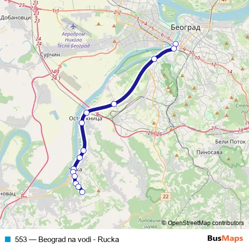 Bus 553 - Beograd na vodi - Rucka: Full Schedule in Belgrade