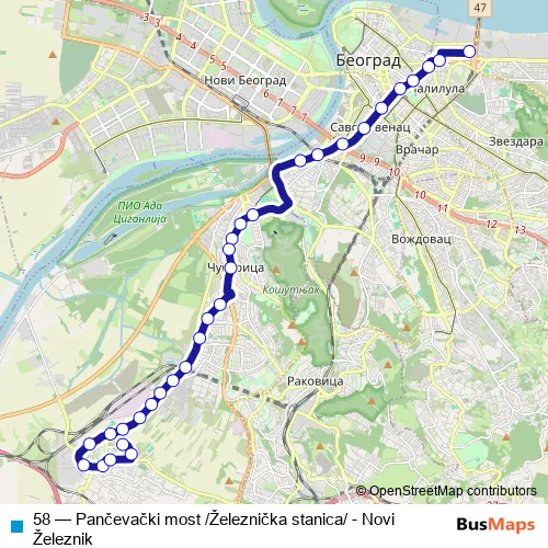 58 Bus - Pančevački most /Železnička stanica/ - Novi Železnik