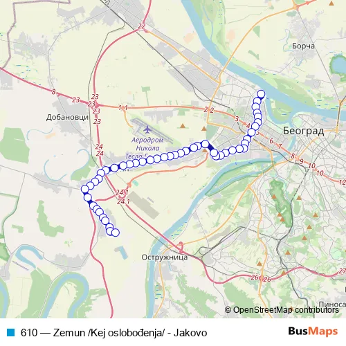Bus 610 - Zemun /Kej oslobođenja/ - Jakovo: Full Schedule in Belgrade