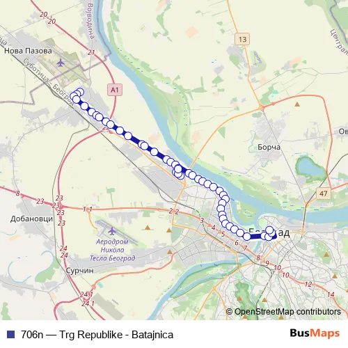 Click here to view the nearest 706n - Trg Republike - Batajnica bus stop.
