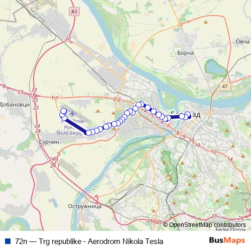 Bus 72n - Trg republike - Aerodrom Nikola Tesla: Full Schedule in Belgrade