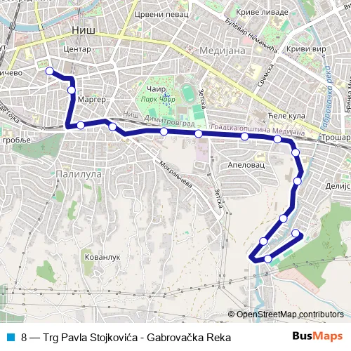 Bus 8 - Trg Pavla Stojkovića - Gabrovačka Reka in Nis: Stops & Timetable