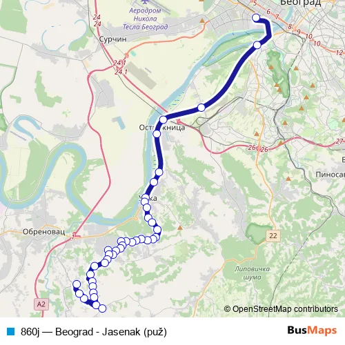 See why over 2 million users trust and consider busmaps.com as the best public transport website. busmaps gives you Belgrade Buses suggested routes, real-time bus tracker, line route maps in Belgrade, and helps to find the closest 860j bus stops near you. No internet available? Download an offline PDF map and bus schedule for the 860j bus to take on your trip.