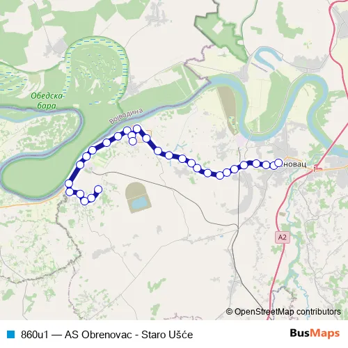 The first stop of the 860u1 bus route is Staro Ušće and the last stop is Obrenovac As. 860u1 (AS Obrenovac - Staro Ušće) is operational during svakodnevno.