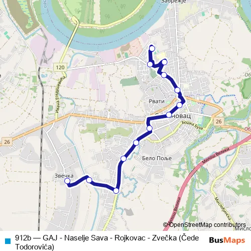 Click here to view the nearest 912b - GAJ - Naselje Sava - Rojkovac - Zvečka (Čede Todorovića) bus stop.