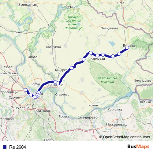 The first stop of the Re 2604 rail route is Vršac and the last stop is Zemun. Re 2604 is operational during svakodnevno.