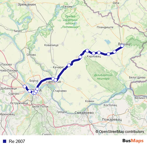 The first stop of the Re 2607 rail route is Zemun and the last stop is Vršac. Re 2607 is operational during svakodnevno.