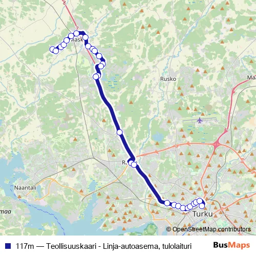 See why over 2 million users trust and consider busmaps.com as the best public transport website. busmaps gives you Masku Buses suggested routes, real-time bus tracker, line route maps in Masku, and helps to find the closest 117m bus stops near you. No internet available? Download an offline PDF map and bus schedule for the 117m bus to take on your trip.