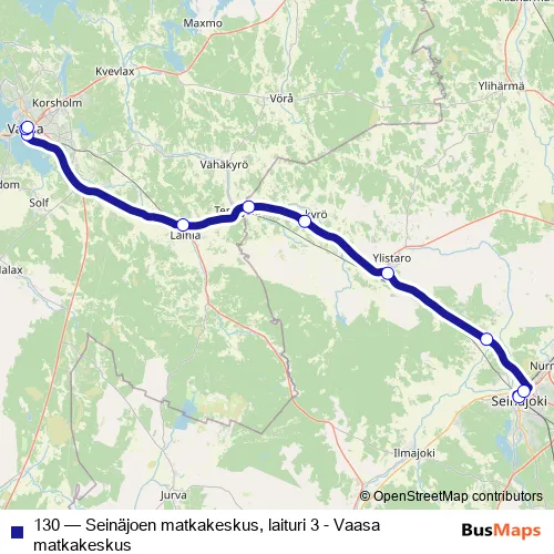 Vaasa matkakeskus. 130 (Seinäjoen matkakeskus, laituri 3 - Vaasa matkakeskus) is operational during varje dag.