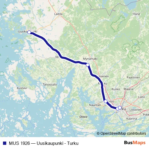 Åbo. MUS 1926 (Uusikaupunki - Turku) is operational during varje dag.