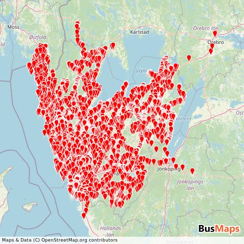 Västtrafik operates in the following cities: Goeteborg, Stenungsund, Kungaelv, Alingsas, Boras, Kungsbacka, Lerum, Trollhaettan, Skaerhamn, Stroemstad, Alafors, Falkoeping, Kinna, Skoevde, Vaenersborg, Mellerud, Moelndal, Lidkoeping, Lysekil, Moelnlycke, Goetene, Munkedal, Partille, Tanumshede, Uddevalla, OEckeroe, Hova, Vargarda, Henan, Mariestad, Ulricehamn, Bollebygd, Svenljunga, Skara, Kungshamn, Nossebro, Toereboda, Tranemo, Vara, Amal, Joenkoeping, Tidaholm, Faergelanda, Lilla Edet, Aroed, Bengtsfors, Graestorp, Karlsborg, Halden, Hjo, Kyrkesund, Loevgaerdet, Tibro, Dingle, Ed, Gardsten, Hammarkullen, Kode, Ljungskile, Lundsbrunn, Mullsjoe, OErebro, Rannebergen, Sandared, Varberg.