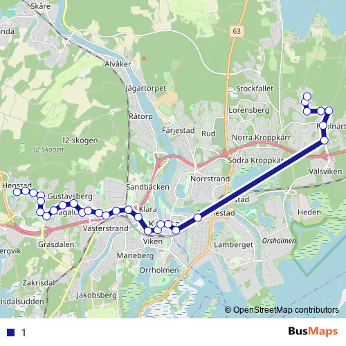 The first stop of the 1 bus route is Henstad, Karlstad and the last stop is Karlstad Campus Futurum. 1 is operational during varje dag.