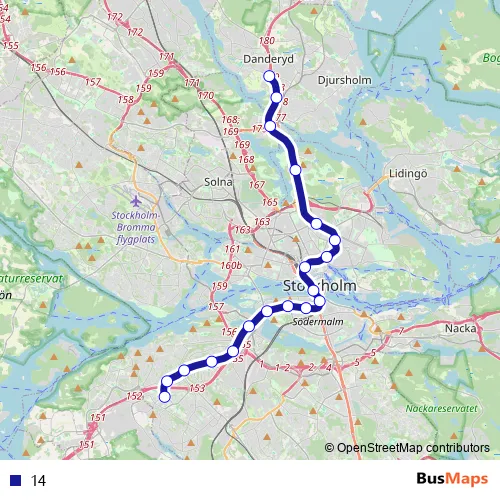 See why over 2 million users trust and consider busmaps.com as the best public transport website. busmaps gives you Stockholm Metro Lines suggested routes, real-time bus tracker, line route maps in Stockholm, and helps to find the closest 14 metro stops near you. No internet available? Download an offline PDF map and bus schedule for the 14 metro to take on your trip.