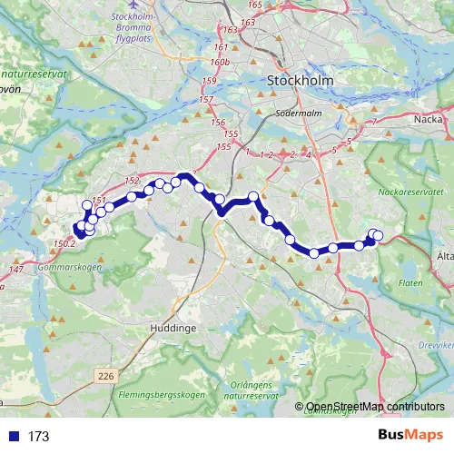 See why over 2 million users trust and consider busmaps.com as the best public transport website. busmaps gives you Stockholm Buses suggested routes, real-time bus tracker, line route maps in Stockholm, and helps to find the closest 173 bus stops near you. No internet available? Download an offline PDF map and bus schedule for the 173 bus to take on your trip.