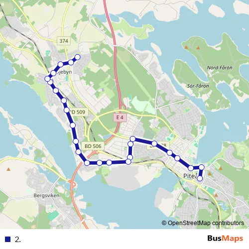 See why over 2 million users trust and consider busmaps.com as the best public transport website. busmaps gives you Pitea Buses suggested routes, real-time bus tracker, line route maps in Pitea, and helps to find the closest 2. bus stops near you. No internet available? Download an offline PDF map and bus schedule for the 2. bus to take on your trip.
