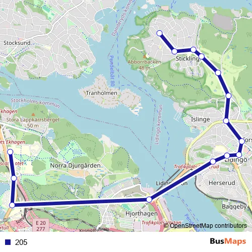 See why over 2 million users trust and consider busmaps.com as the best public transport website. busmaps gives you Lidingoe Buses suggested routes, real-time bus tracker, line route maps in Lidingoe, and helps to find the closest 205 bus stops near you. No internet available? Download an offline PDF map and bus schedule for the 205 bus to take on your trip.