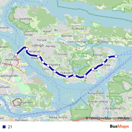 See why over 2 million users trust and consider busmaps.com as the best public transport website. busmaps gives you Stockholm Trams suggested routes, real-time bus tracker, line route maps in Stockholm, and helps to find the closest 21 tram stops near you. No internet available? Download an offline PDF map and bus schedule for the 21 tram to take on your trip.