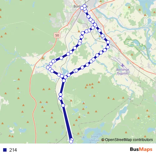 The first stop of the 214 bus route is Borlänge Centralstation and the last stop is Borlänge Centralstation. 214 is operational during varje dag.