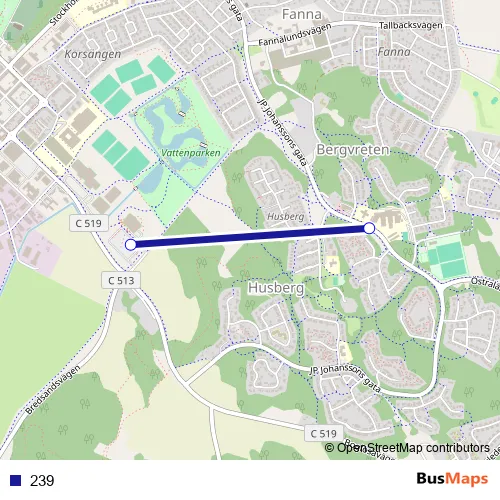 Additional information: 239 has 2 stops and the total trip duration for this route is approximately 10 minutes.