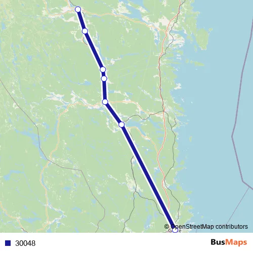 The first stop of the 30048 bus route is Gävle Centralstation and the last stop is Ljusdal station. 30048 is operational during varje dag.
