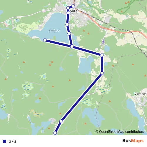 The first stop of the 376 bus route is Säter Lagmannen and the last stop is Nisshyttan. 376 is operational during på vardagar.