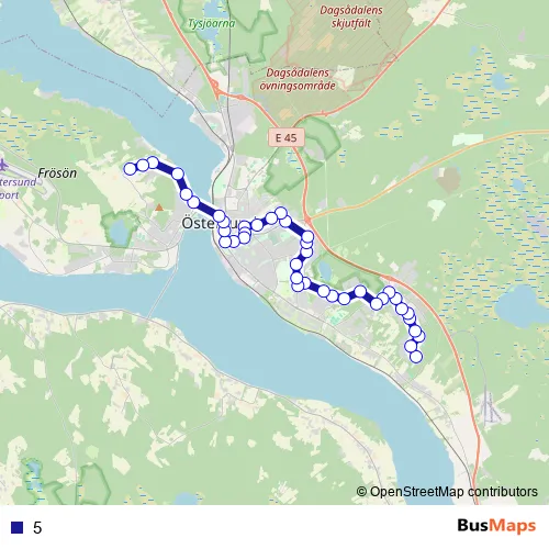 See why over 2 million users trust and consider busmaps.com as the best public transport website. busmaps gives you OEstersund Buses suggested routes, real-time bus tracker, line route maps in OEstersund, and helps to find the closest 5 bus stops near you. No internet available? Download an offline PDF map and bus schedule for the 5 bus to take on your trip.