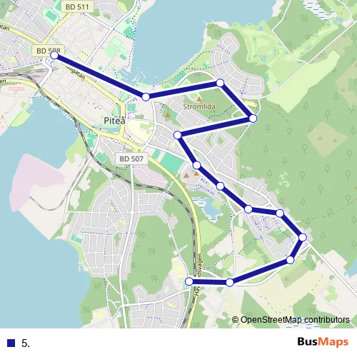 See why over 2 million users trust and consider busmaps.com as the best public transport website. busmaps gives you Pitea Buses suggested routes, real-time bus tracker, line route maps in Pitea, and helps to find the closest 5. bus stops near you. No internet available? Download an offline PDF map and bus schedule for the 5. bus to take on your trip.