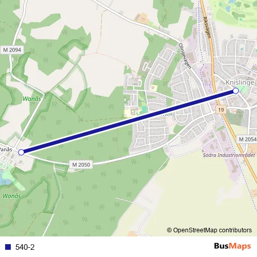 The first stop of the 540-2 bus route is Vanås slott and the last stop is Knislinge busstation. 540-2 is operational during varje dag.