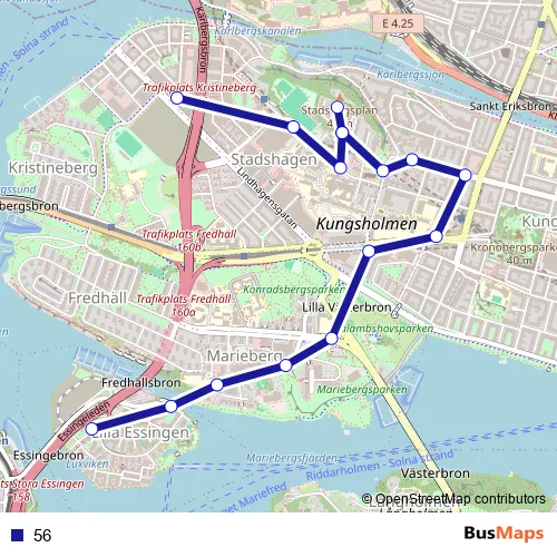 See why over 2 million users trust and consider busmaps.com as the best public transport website. busmaps gives you Stockholm Buses suggested routes, real-time bus tracker, line route maps in Stockholm, and helps to find the closest 56 bus stops near you. No internet available? Download an offline PDF map and bus schedule for the 56 bus to take on your trip.