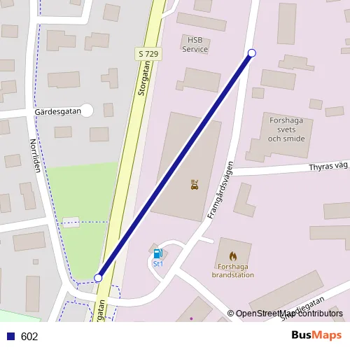 The first stop of the 602 bus route is Karlstad busstation and the last stop is Forshaga Grossbol. 602 is operational during varje dag.
