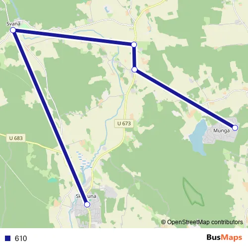 The first stop of the 610 bus route is Munga fritidsområde 4 and the last stop is Persboskolan. 610 is operational during på vardagar.