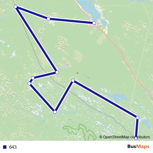 The first stop of the 643 bus route is Rätan and the last stop is Sörtjärn station. 643 is operational during varje dag.