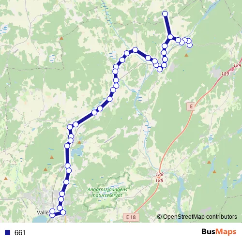 Services on the 661 bus stop at 18:38 on måndag, tisdag, onsdag, torsdag, fredag.