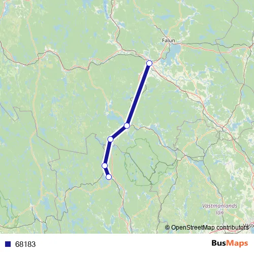 The first stop of the 68183 bus route is Gävle Centralstation and the last stop is Storvik station. 68183 is operational during på vardagar.