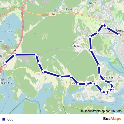 The first stop of the 683 bus route is Åkersberga station and the last stop is Arninge station buss. 683 is operational during varje dag.