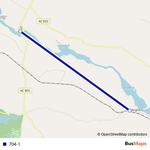 The first stop of the 704-1 bus route is Finnforsfallet and the last stop is Krångfors. 704-1 is operational during på vardagar.