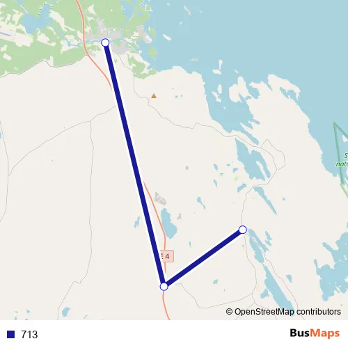 The first stop of the 713 bus route is Nedre Bäck Bäckån and the last stop is Bureå torg. 713 is operational during varje dag.