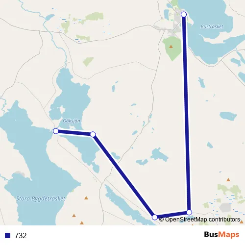 The first stop of the 732 bus route is Burträsk busstation and the last stop is Kvarnbyn. 732 is operational during varje dag.