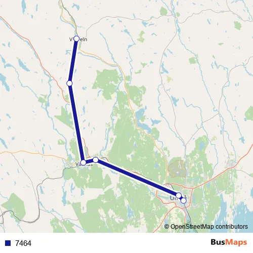The first stop of the 7464 rail route is Umeå Östra station and the last stop is Vindeln Resecentrum/Station. 7464 is operational during varje dag.