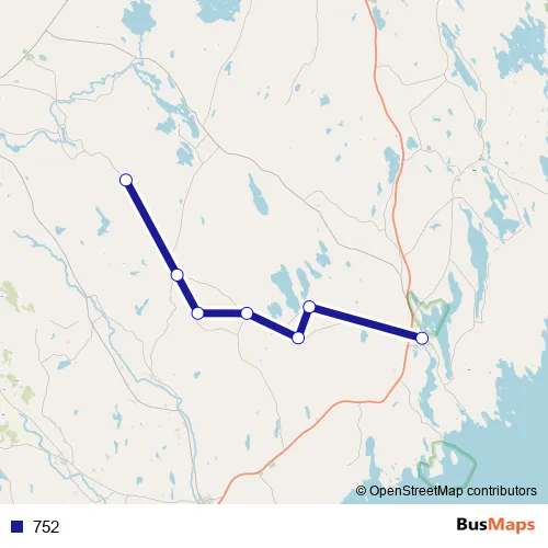 Services on the 752 bus stop at 13:25 on måndag, torsdag.