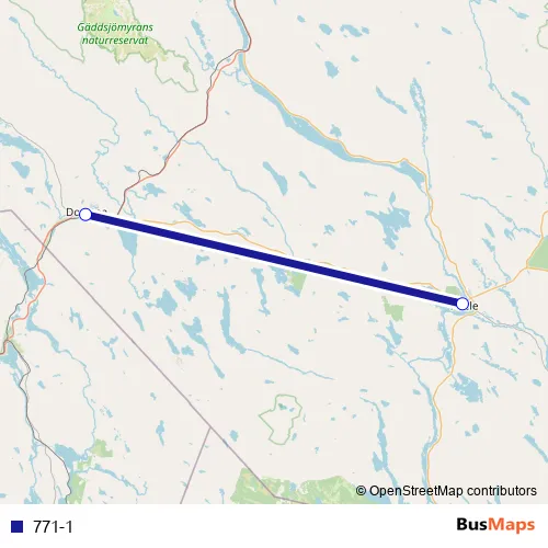 The first stop of the 771-1 bus route is Dorotea busstation and the last stop is Åsele busstation. 771-1 is operational during varje dag.