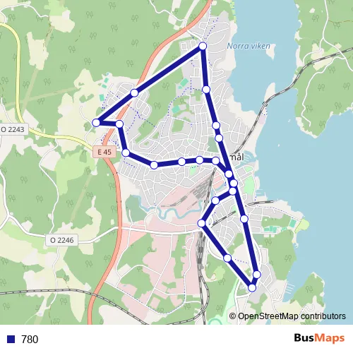 The first stop of the 780 bus route is Åmål torg and the last stop is Åmål torg. 780 is operational during på vardagar.