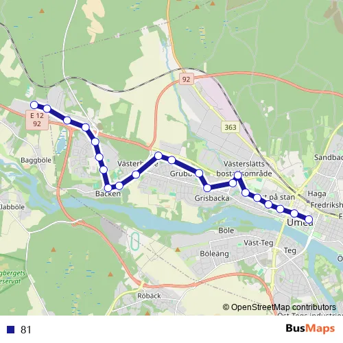 See why over 2 million users trust and consider busmaps.com as the best public transport website. busmaps gives you Umea Buses suggested routes, real-time bus tracker, line route maps in Umea, and helps to find the closest 81 bus stops near you. No internet available? Download an offline PDF map and bus schedule for the 81 bus to take on your trip.