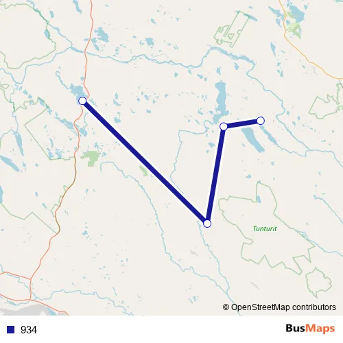The first stop of the 934 bus route is Kääntöjärvi and the last stop is Skaulo E10. 934 is operational during varje dag.