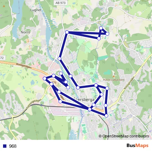 The first stop of the 968 bus route is Åkersberga station and the last stop is Åkersberga station. 968 is operational during på vardagar.