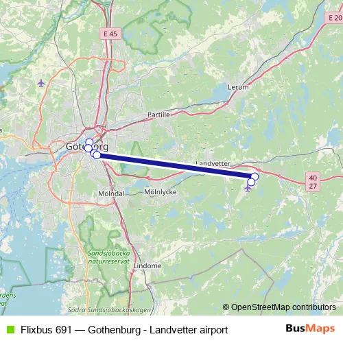 Click here to view the nearest Flixbus 691 - Gothenburg - Landvetter airport bus stop.