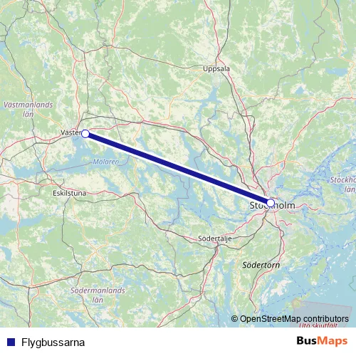 The first stop of the Flygbussarna bus route is Stockholm Cityterminalen and the last stop is Västerås flygplats. Flygbussarna is operational during varje dag.