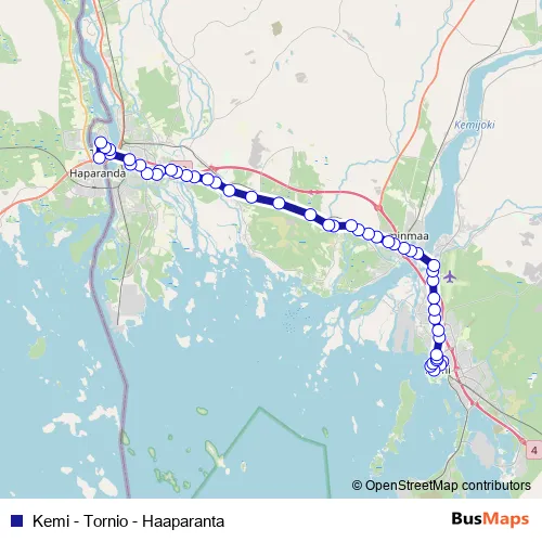 Bus Kemi - Tornio - Haaparanta in Haparanda: Stops & Timetable
