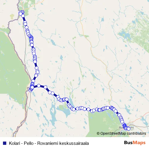 Jokijalantie - Virkasaajontie - Pellontie - Kalliontie - Pellontie - Kolarintie - Pellontie - Burmannintie - Pellontie - Kalottitie - Rovaniementie - Pellontie - Rovaniementie - Pellontie - Kittiläntie - Kairatie - Koskikatu - Poromiehentie - Hallituskatu - Valtakatu - Ounasvaarantie - Ounasrinteentie - Porokatu