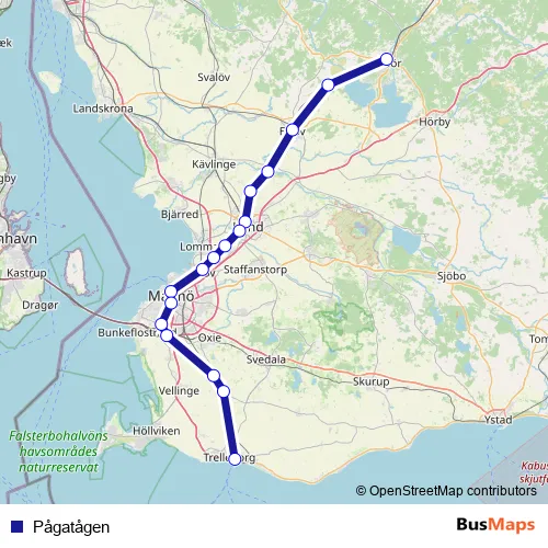 See why over 2 million users trust and consider busmaps.com as the best public transport website. busmaps gives you Malmoe Rail Services suggested routes, real-time bus tracker, line route maps in Malmoe, and helps to find the closest Pågatågen rail stops near you. No internet available? Download an offline PDF map and bus schedule for the Pågatågen rail to take on your trip.